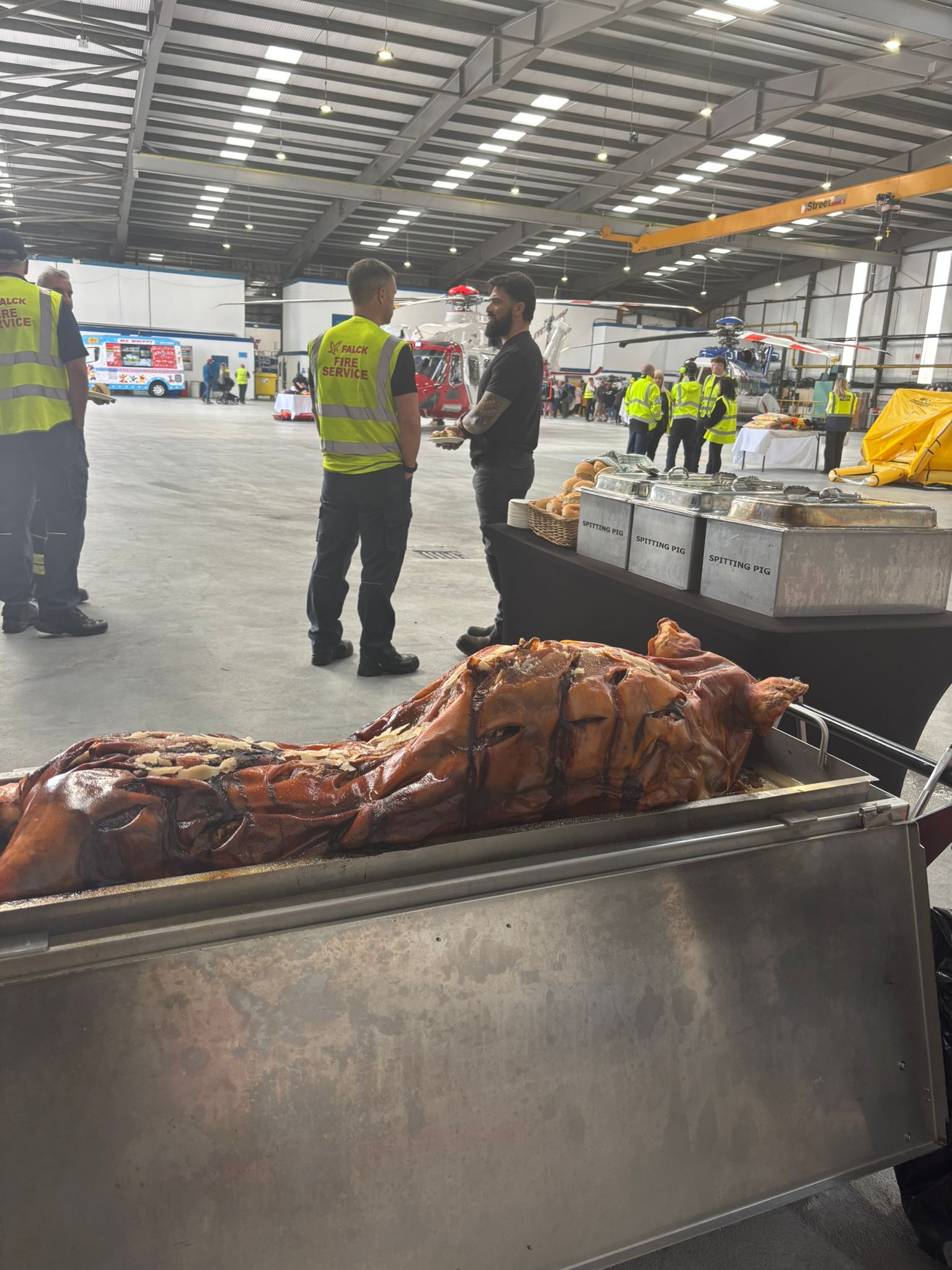 Hog Roast Aberdeen recently made an appearance at Forties Road Dyce, which, as you might already know, is Bristow’s local base! Now, before you get too excited, we weren’t there to fly a helicopter (we’ll stick to our catering van, thank you very much!) but for a chance to feed 400 hungry guests.